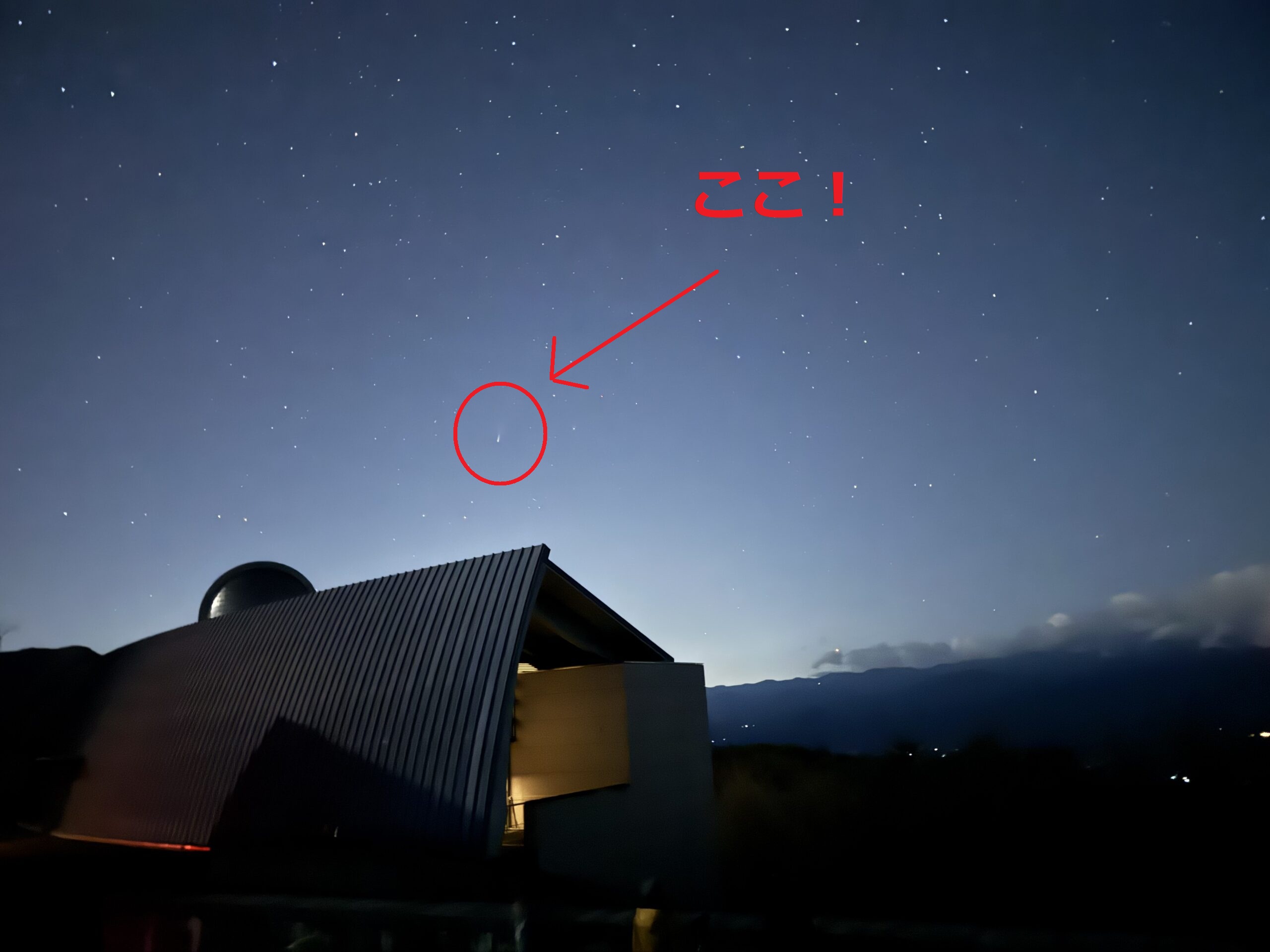 まずはレモン彗星の観察。大きな望遠鏡だけあって、尾を引いた姿までしっかり見えました